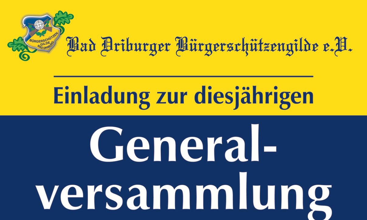 Die Bad Driburger Bürgerschützengilde e.V. veranstaltet am 6.März 2026 im Schützenhaus ihre jährliche Generalversammlung. Beginn der Veranstaltung ist um 19.00 Uhr. Der geschäftsführende Vorstand macht darauf aufmerksam, dass die Tagesordnung kurzfristig geändert werden muss. An „Top 3“ wird an diesem Abend die Wahl des Obersts durchgeführt. Anschließend erfolgen die Tagesordnungspunkte,... Artikel ansehen