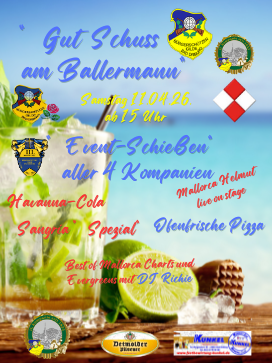 Die Kompanieversammlung der 4. Kompanie der Bürgerschützengilde Bad Driburgwird am 27. Februar um 19.30 Uhr im Schießstand stattfinden. Nach 12 Jahren Amtszeit in den Reihen der vierten Kompanie wird der noch amtierende Vorstand mit einem lachenden und weinenden Auge ausscheiden. Es wird entsprechend Neuwahlen geben, deswegen erscheint bitte zahlreich. Einen... Artikel ansehen