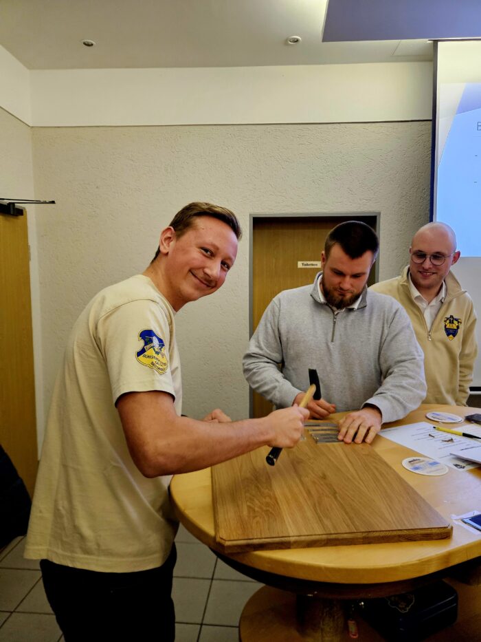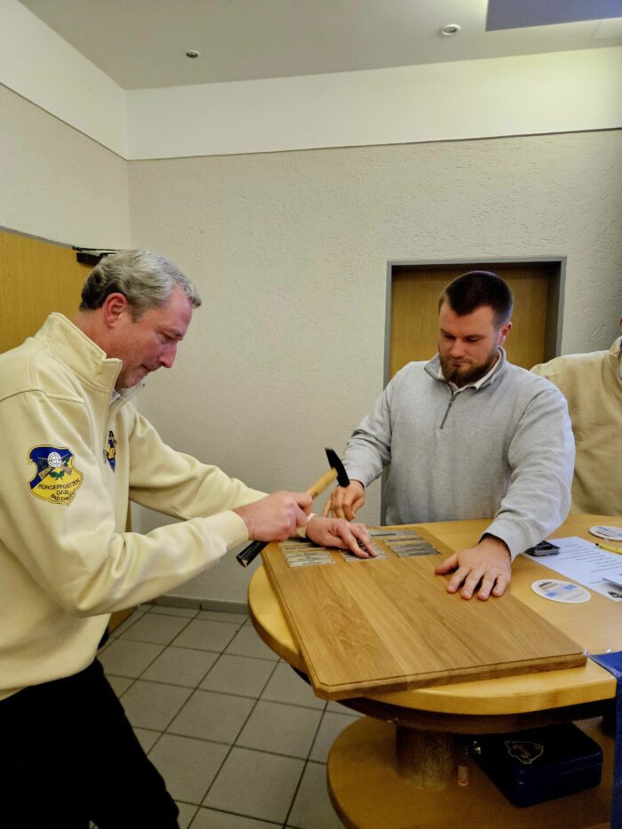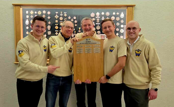 Die besten Schützen des vergangenen Schützenjahres durften ihr persönliches Ehrenschild wieder selbst auf die Ehrentafel der Gilde nageln. Für die Leistung gratulierten alle Anwesenden Schützen mit einem kräftigen ,,Gut Schuss“!