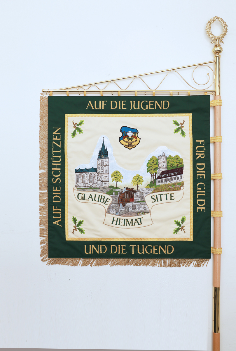 Wir präsentieren unsere eigens gestaltete Standarte, ein Symbol, das wir mit stetem Stolz tragen. Die Premiere dieser Standarte fand im Jahr 2019 beim Königschießen statt und wurde im Rahmen des Schützenhochamts geweiht. Als Jugendvertretung der Bürgerschützengilde Bad Driburg empfinden wir dies als eine bedeutende Auszeichnung! An dieser Stelle möchten wir uns erneut herzlich bei allen Unterstützern bedanken. Ohne Ihre großzügige Hilfe wäre die Verwirklichung unseres Traums nicht möglich gewesen! Ein herzliches DANKESCHÖN!